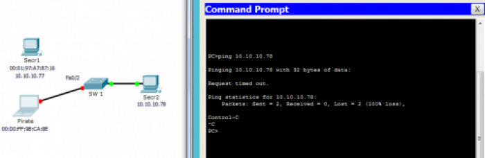 Tout se passe bien jusqu'à ce que l'ordinateur pirate tente d'envoyer une trame sur le réseau :